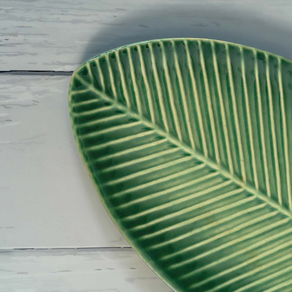 Made from stoneware with detailings of banana leaf, perfect to serve assorted snack spread.